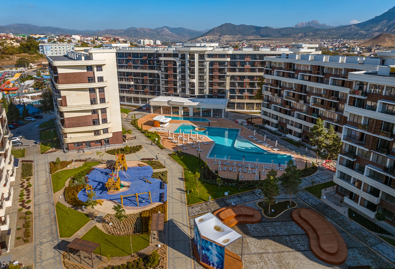 Апартаменты с панорамным видом на море и горы предлагают просторные номера с кухней, полностью оборудованной всем необходимым. Номерной фонд – 210 апартаментов. Гостей ждет полный спектр услуг и консьерж-сервис.