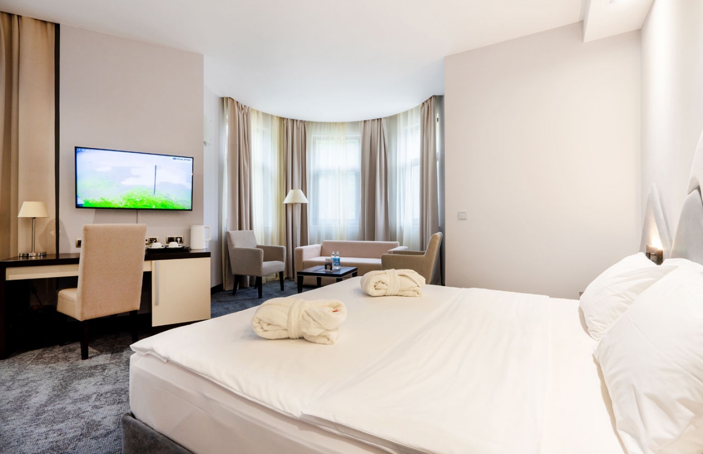 Наше стремление к совершенству стало следующим шагом: мы бережно обновили все номера в категории «Полулюкс», создав атмосферу полного покоя и восстановления. Мы продумали каждую деталь — от фактур, цветов и мягкого освещения до эргономики пространства, чтобы ничто не отвлекало вас от полноценного отдыха.