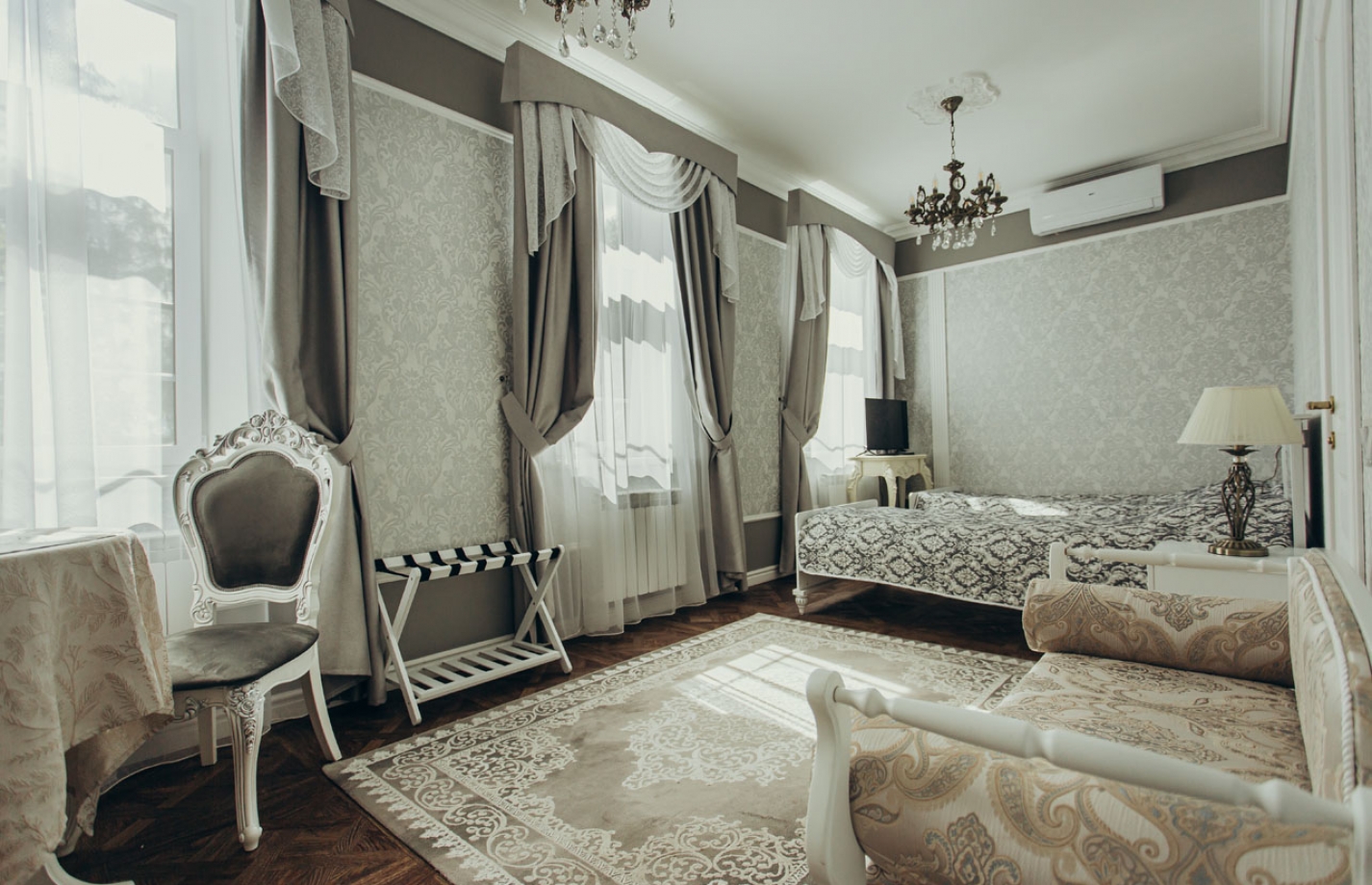 Бутик-отель имеет 8 номеров, каждый выполнен в индивидуальном стиле. Номера различной категории, оборудованные мебелью, техникой (телевизор, холодильник, кондиционер), Wi-Fi. Есть зал для приема пищи, бильярд, ресепшн.