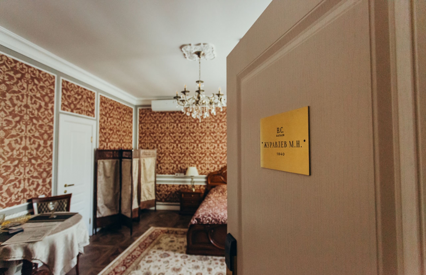 Вы можете поселиться в номере с фамилией Сигсон, Шейнкер, Карякин, Ушаков, Тюменев, Дурдин, Михалков, Журавлев. Каждый номер выполнен в индивидуальном стиле. Номера названы в честь выдающихся личностей г Рыбинск и стилизован под эпоху, в которой они жили.