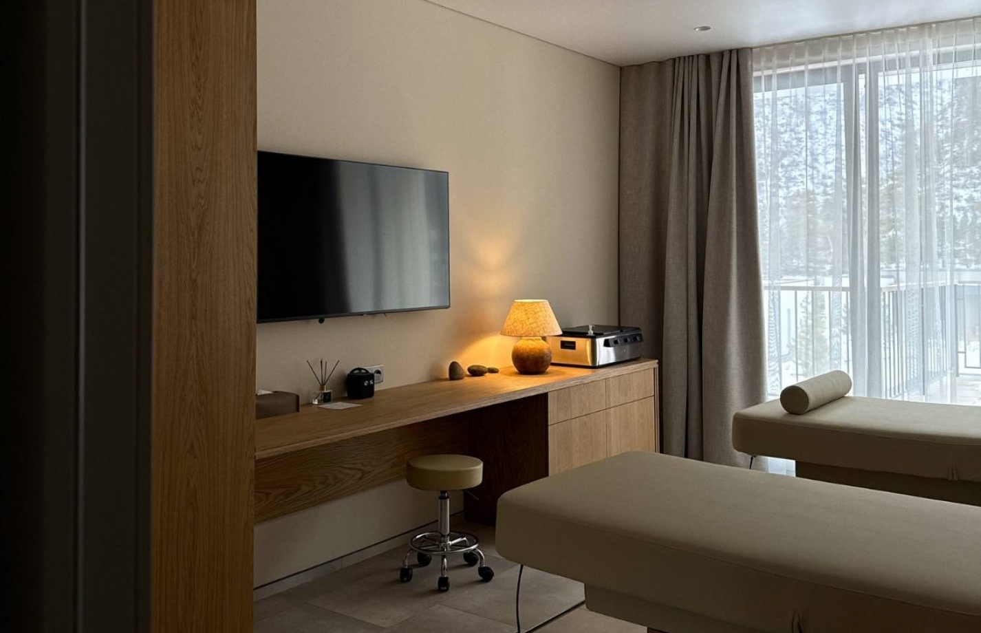 - Спа-процедуры — кедровая бочка, стоун-терапия, тейпирование, использование спа-косметики брендов Phytomer и Phytoceane для заботы о лице и теле