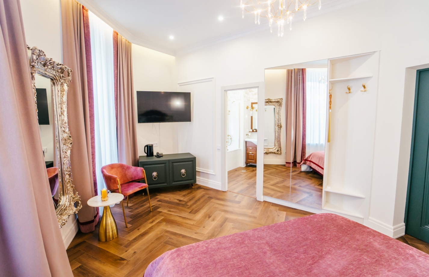 Уютная атмосфера и современный дизайн. Он оборудован всем необходимым для комфортного проживания, включая удобную мебель и современные удобства, что делает его идеальным выбором для отдыха в историческом центре города.