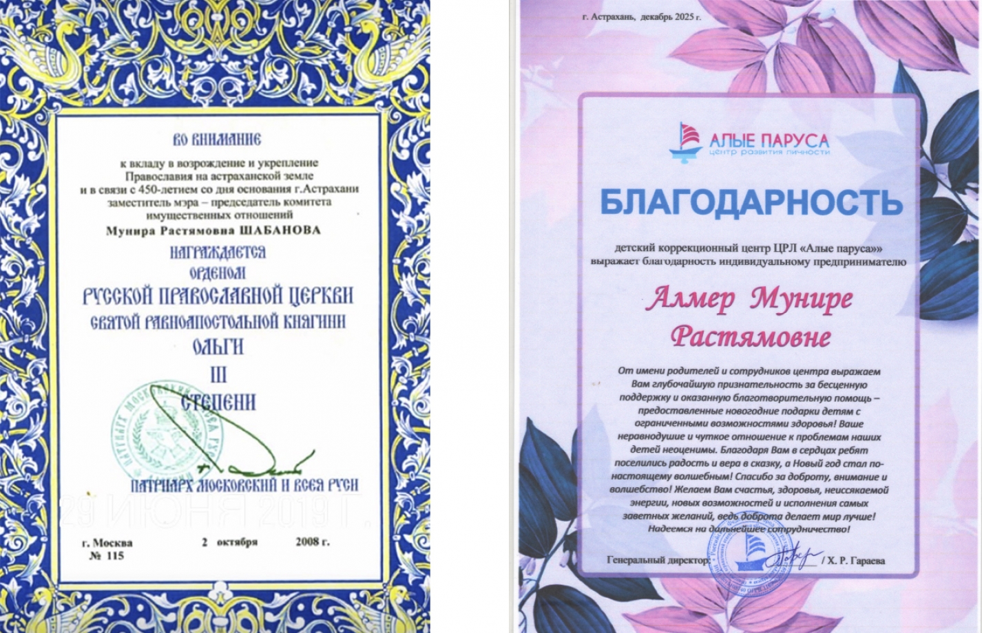Социальная ответственность является важной частью управленческой стратегии Муниры Алмер. Более 15 лет она инициирует и координирует благотворительные проекты по поддержке детей из малообеспеченных семей и воспитанников детских домов. Ежегодно организуется сбор и адресная доставка новогодних подарков, что обеспечивает системную и реальную помощь.