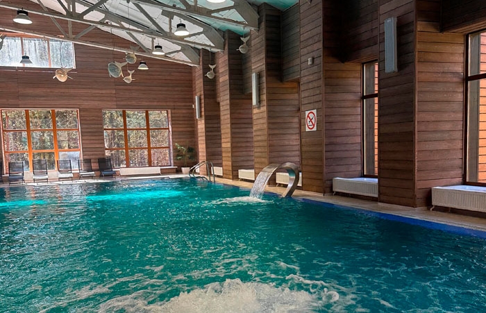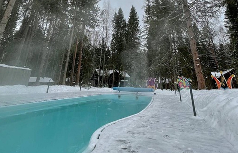 - Уютный уличный всесезонный подогреваемый бассейн в сосновом лесу.