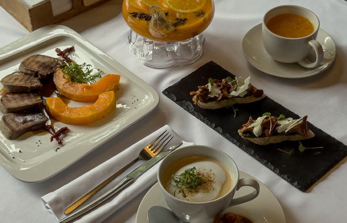 Камерный ресторан с камином и необычными деталями в интерьере. Ресторан радует гостей блюдами с огня и блюдами восточной кухни. Для маленьких гостей так же действует детское меню