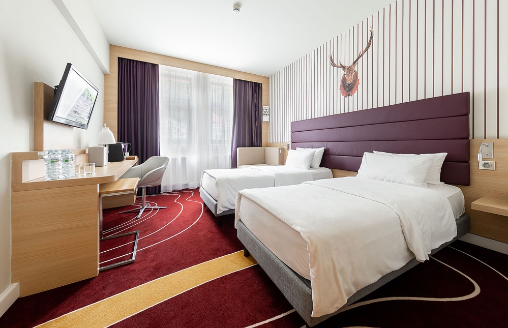 Номер категории «Привилегия твин» 24кв.м. с двумя односпальными кроватями с прекрасным видом на реку. В номере есть все необходимое для вашего комфортного и безопасного пребывания в нашем отеле.