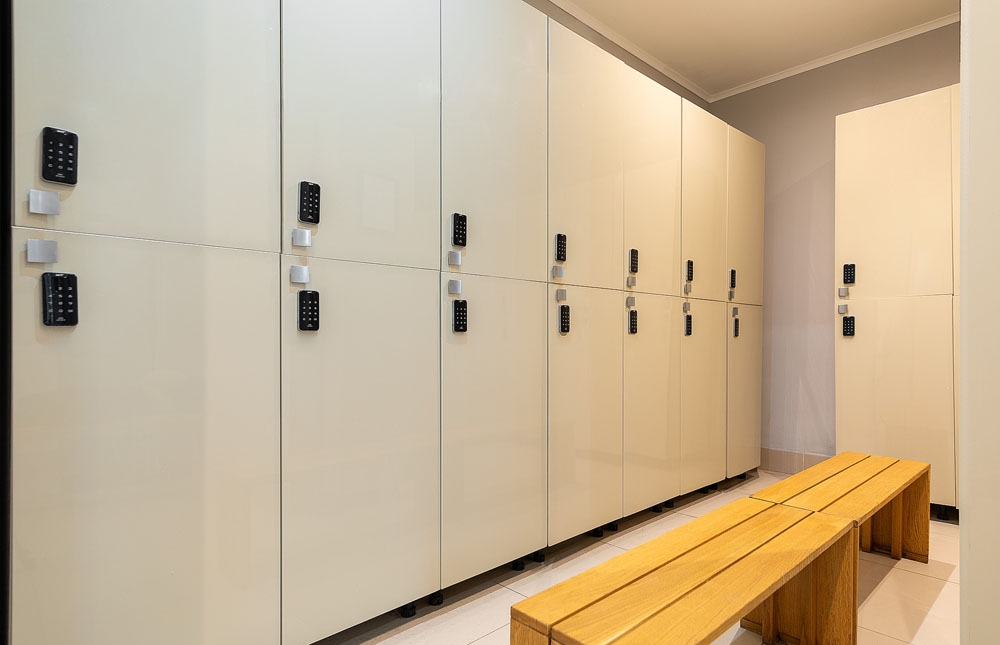 • Просторная комната для хранения горнолыжного оборудования с индивидуальными современными шкафчиками
