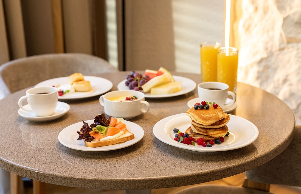 Уютная атмосфера и современный стиль. Панорамные окна с видами на реку. Идеальное место для заряда вашей энергии и наслаждения блюдами европейской кухни из локальных продуктов. Для маленьких гостей предусмотрено детское меню.