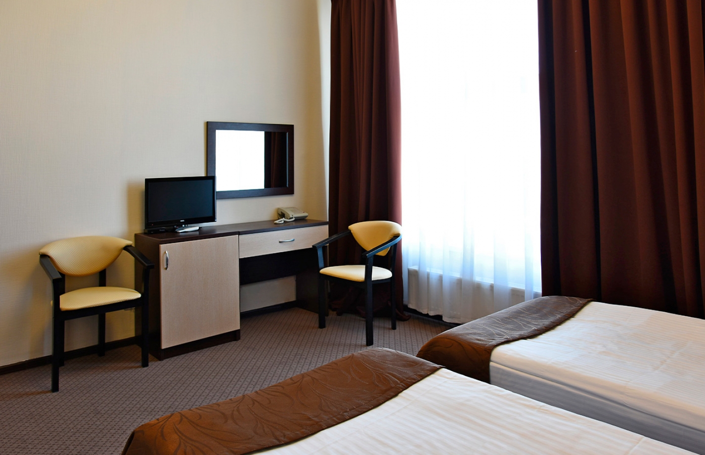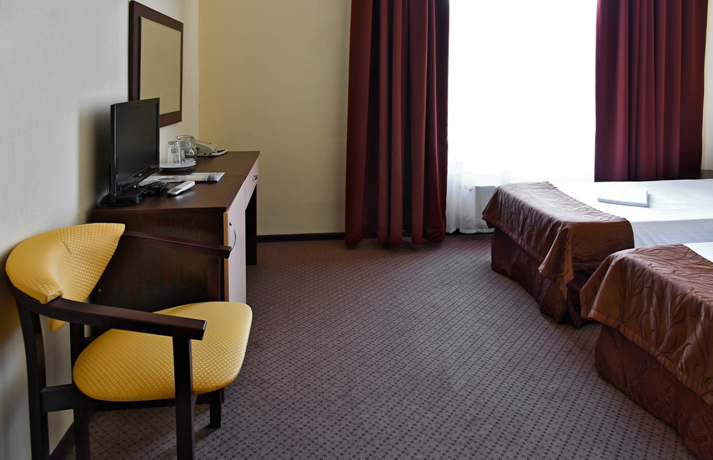 Прекрасный вариант для проживания туристических групп и индивидуальных путешественников. Для деловых поездок предусмотрена эргономичная рабочая зона. В номере данной категории: две раздельные кровати размером 900*2000 мм с возможностью трансформации двух кроватей в одну двуспальную по запросу, диван-кровать, новая функциональная мебель, телевизор, телефон, индивидуальная система кондиционирования, чайная станция, сейф, мини-бар. Мини-бар предназначен для охлаждения напитков. Санузел совмещен с ванной, оснащен феном. Минимальное количество номеров включает в себя лоджию/балкон. В зависимости от проекта и планировки, возможно видоизменение номера, как в комплектации, так и в оформлении.