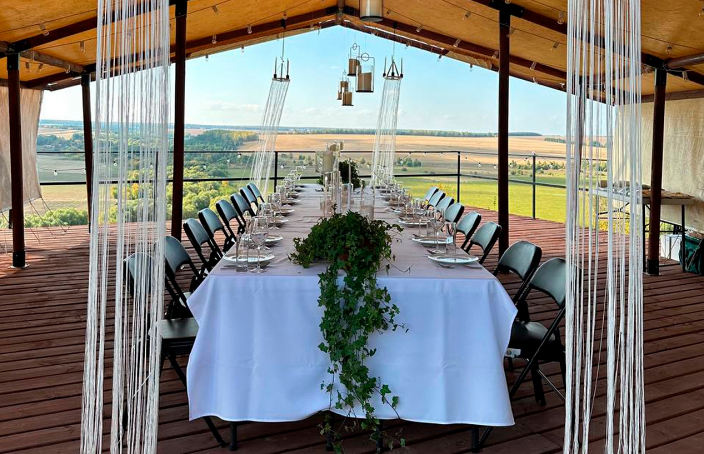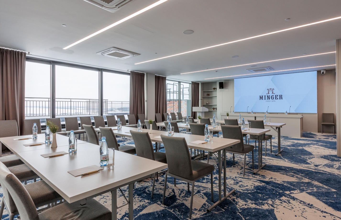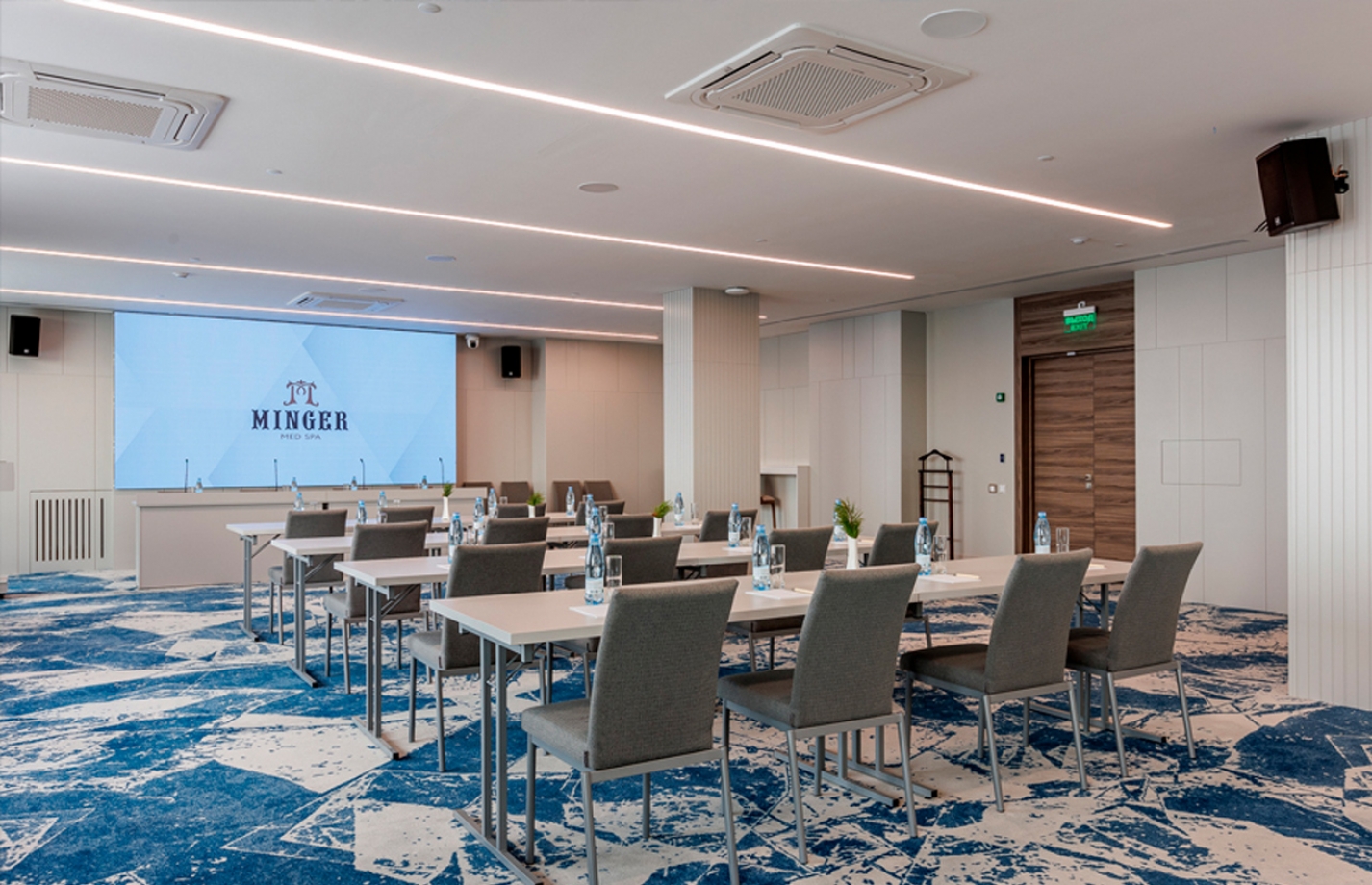 Комфортабельный зал с открытой террасой и панорамным видом на долину озер. Оборудован системой проведения видеоконференций и вмещает до 80-ти гостей.