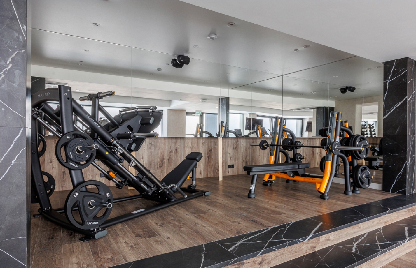 Мы создали все условия для спортивных любителей и профессионалов, одно из которых — наличие просторного, оснащённого тренажёрного зала. Он включает в себя все виды профессиональных тренажёров Matrix Fitness: функциональные, силовые и кардио.