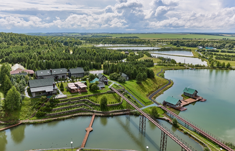 2 000 гектар лесного массива, 60 км пешеходных троп для терренкура, 15 каскадных озёр, система каналов и родников – всё это помогает нашим гостям погрузиться в атмосферу гармонии с природой и восстановить свои силы.