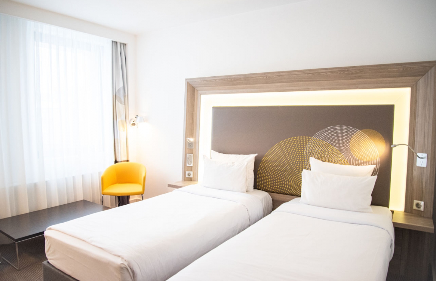 Номер Standard с двумя односпальными кроватями приятно удивит стильным и лаконичным дизайном. В номере представлено все для комфортного пребывания: две односпальные кровати, рабочая зона, ванная комната с душевой кабиной или ванной, сейф, кондиционер, холодильник, фен и прекрасный набор гостеприимства.