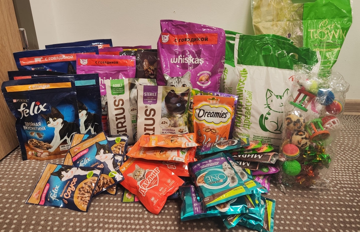 - Помощь приюту для животных (предоставление корма для кошек);