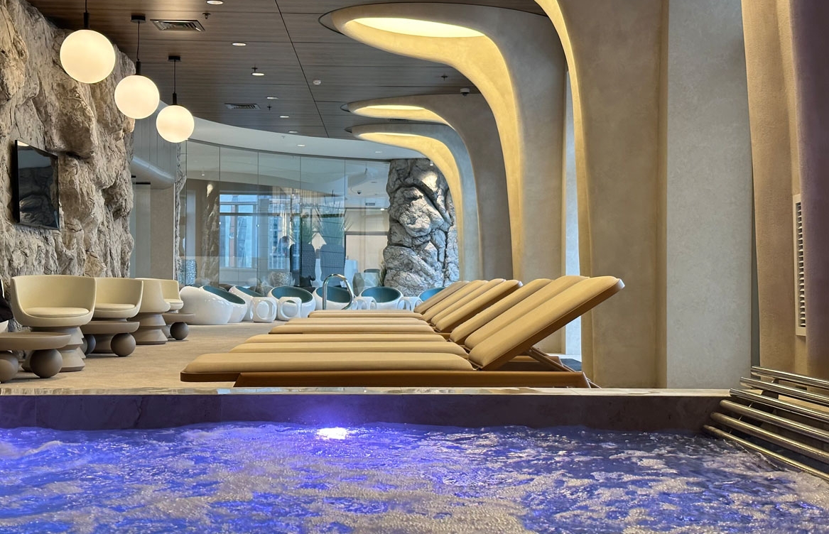 - 4 бассейна: аэро-гидромассажный бассейн, соляной бассейн (флоатинг), джакузи, контрастная холодная купель;