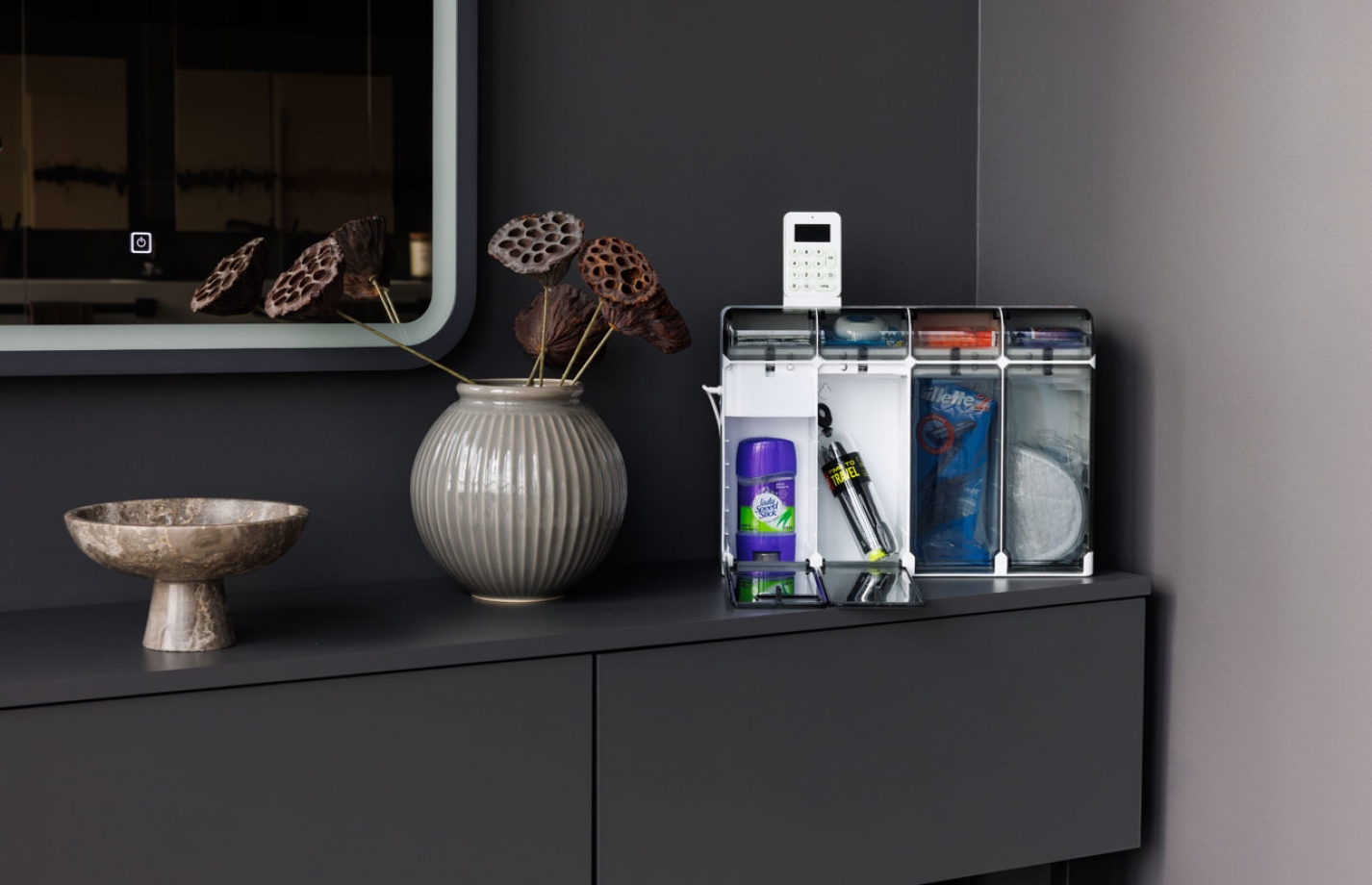 Мини-вендинг позволяет отельерам автоматизировать учёт продукции в отеле, получать прозрачную статистику о продажах и прибыли с помощью нашего приложения.