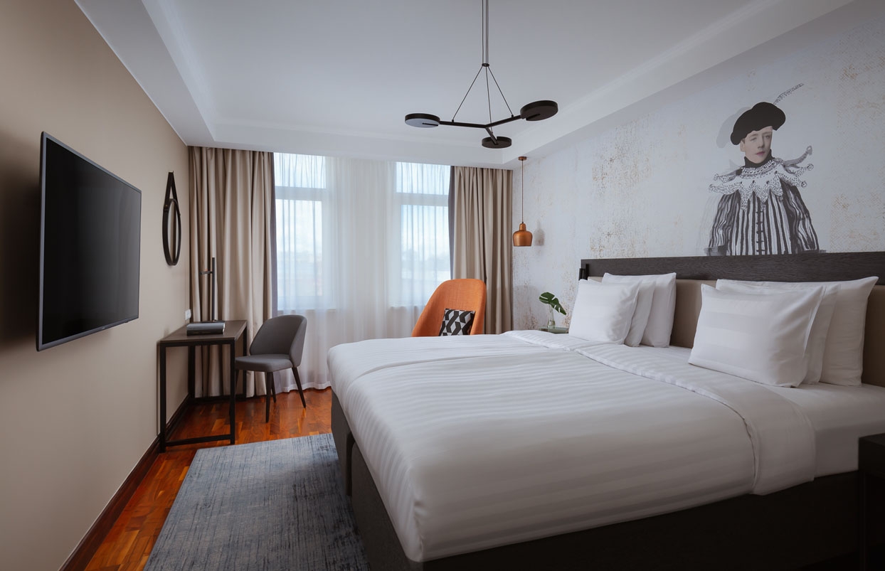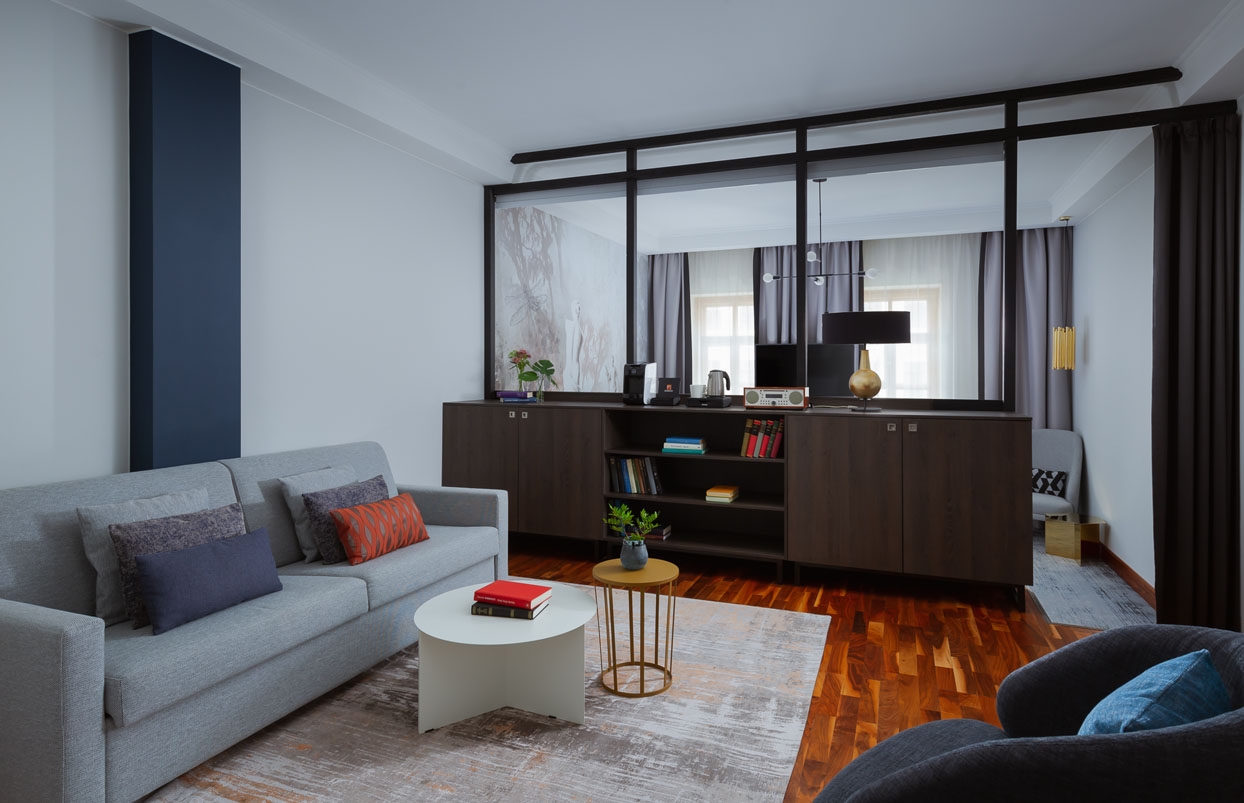 Однако отель Vasilievsky — это еще и про современные IT-решения. Так, в люксах отеля стоят голосовые помощники, работает Smart TV, внедрена авторская разработка Wone IT – сервис по самостоятельной регистрации для гостей Wroomify.